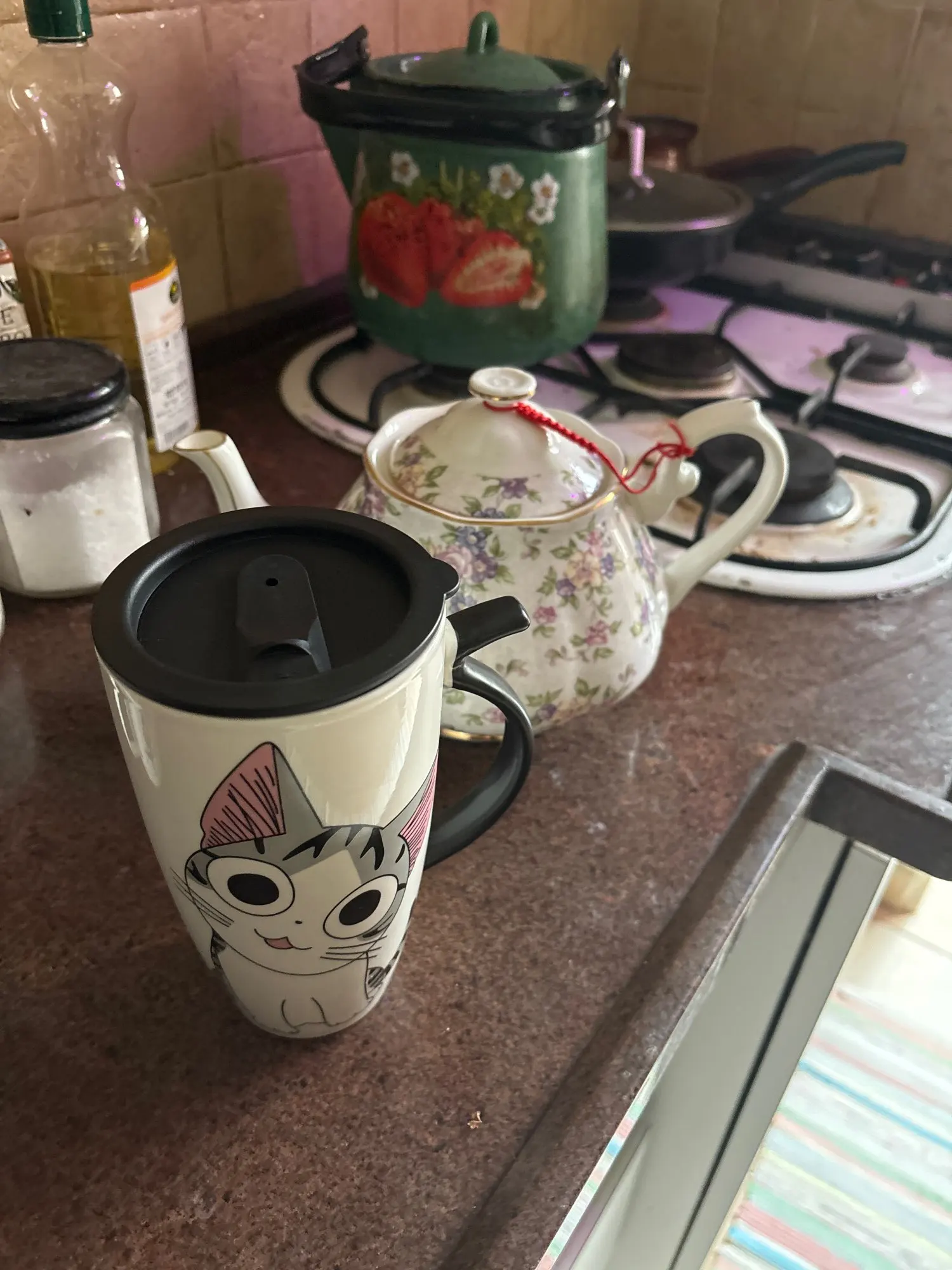 Mug chat avec couvercle avec manche en forme de queue