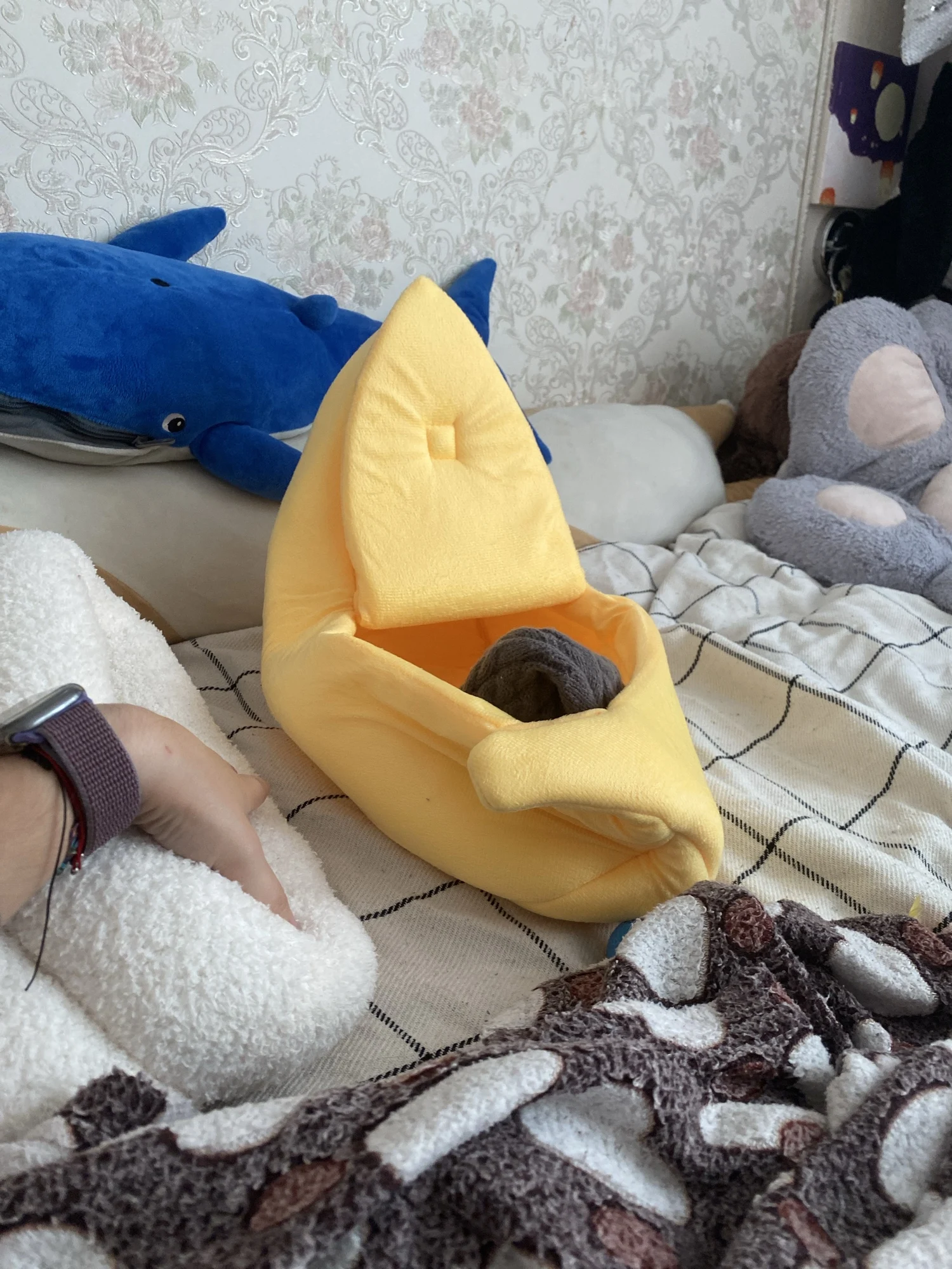 Offrez à votre félin un refuge à croquer avec ce panier pour chat banane. Sa peau rabattable crée un cocon fermé qui filtre la lumière et les courants d’air, idéal pour les chats qui aiment se cacher tout en gardant un œil discret sur la pièce. L’intérieur ultra doux enveloppe le corps pour des siestes profondes, tandis que le coussin amovible facilite l’entretien au quotidien.